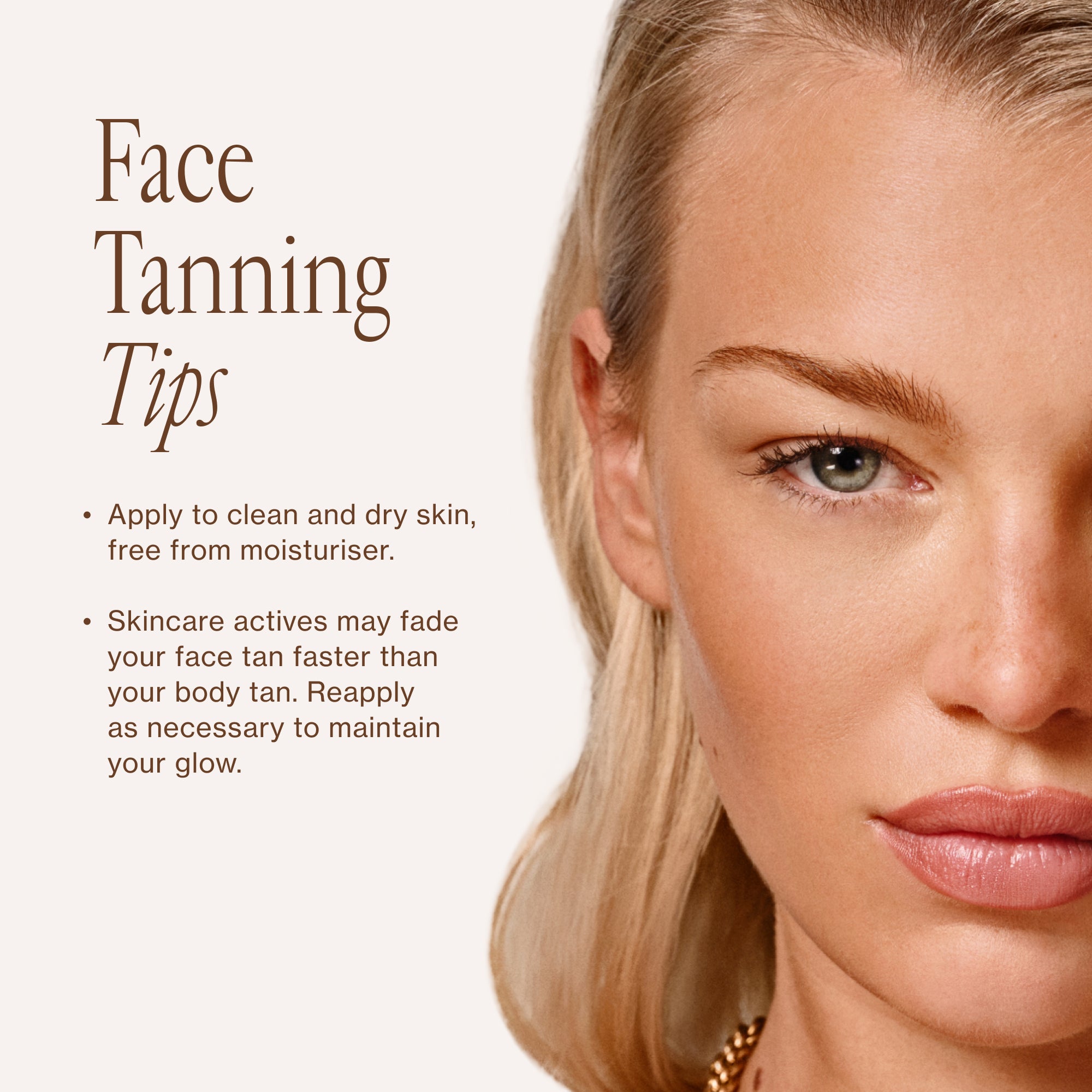 Pro tip: Avoid using moisturiser or skincare actives during this 24 hour period to allow your tan to fully develop.